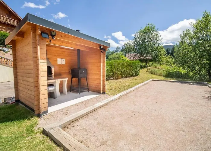 La Les Marmottes, 10 A 20P Avec Bb-Foot, Billard, Bar Villa si trova a una distanza di 2 km dalla Chèvrerie de Peute Goutte e invita gli ospiti a godere di una terrazza. Questo chalet offre agli ospiti un'esperienza rilassante con una sauna.